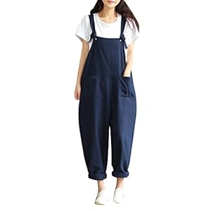 Yasong Women Loose Fit Wide Leg Dungarees Jumpsuit Playsuit Navy